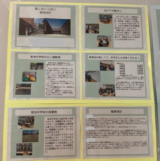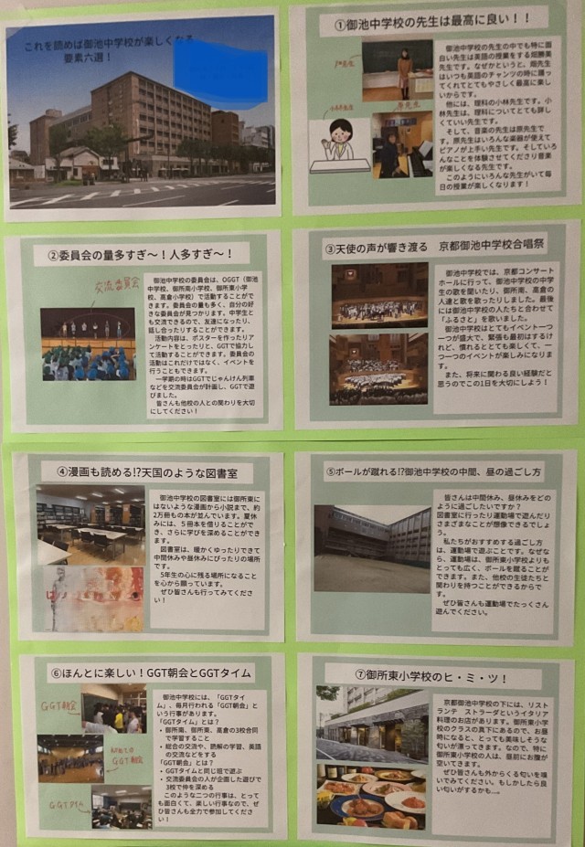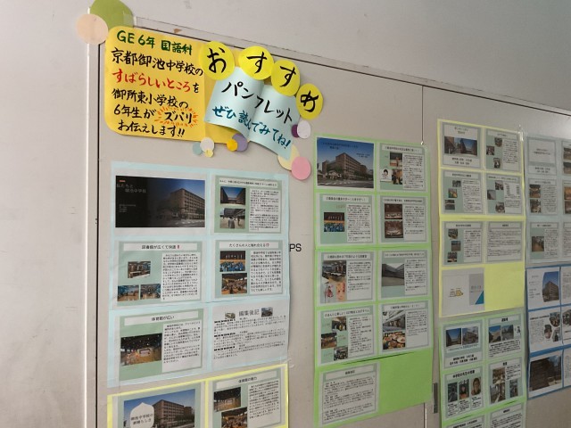 国語科の学習で御所東小学校の6年生が、来年度に向けての体験学習に来る5年生のために京都御池中学校の素晴らしいところを紹介するパンフレットを作りました。