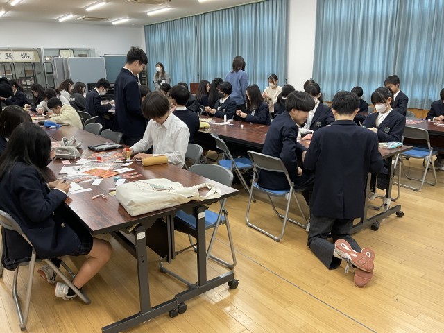 生徒たちは地域の方との会話を楽しみながら、ブックマークの制作を行っていました。