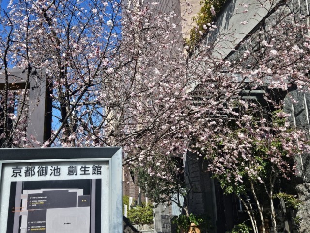 道行く人々の目に止まり、毎年、御池創生館の一角に一足早く、「御池桜」が春の訪れを感じさせてくれています。