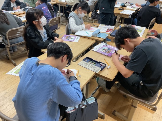 など、活動し始めた年度当初の様子と違い、和やかな雰囲気でにこにこと話しながら、カードをつづる子どもたちの姿がありました。