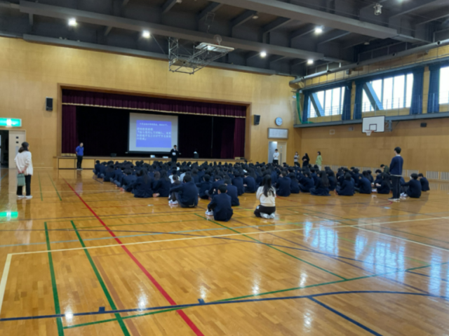 7年:入学して初めての学年集会。しっかり先生の話を聞いて、考える時間はしっかりと考えられていました。