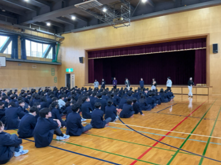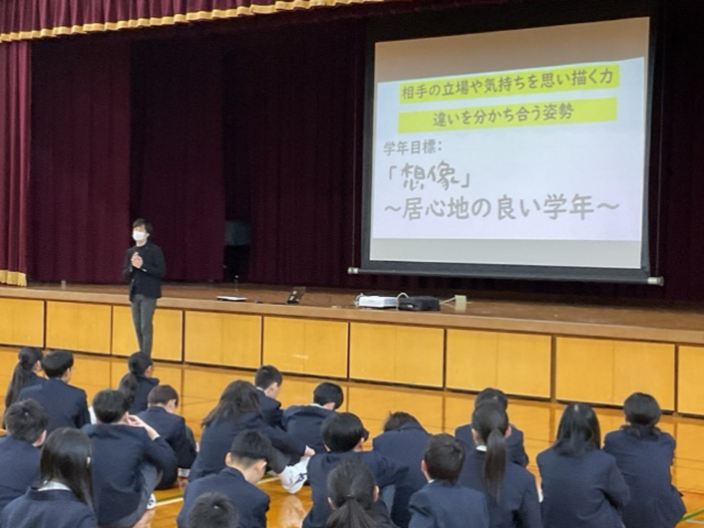 8年:8年生新年度最初の学年集会。生活や学習に向かう姿勢、心構えを確認したり、学年団の先生方の自己紹介などが行われました。