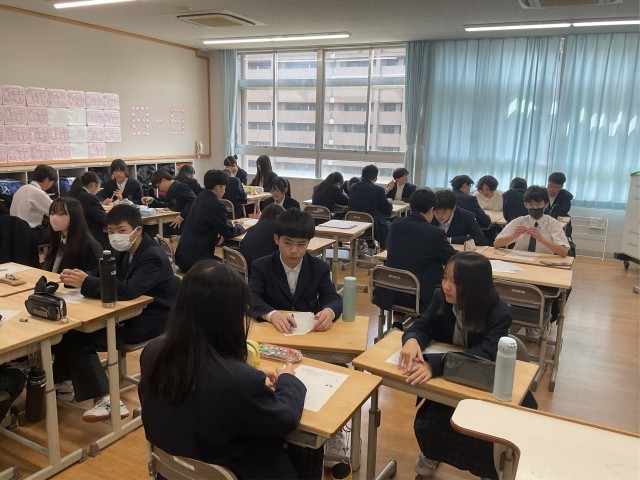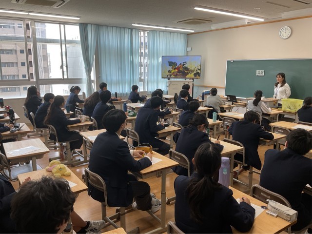 8年生で読解の授業を行いました。本時は絵画を見て、伝えたかったことを多角的に想像するという活動を中心に行いました。生徒はいろんな視点から表現されているものを読み取り、自分の意見を積極的に交流することができていました。