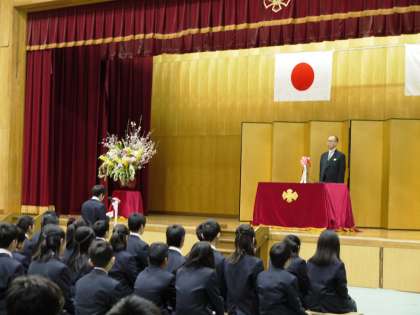在校生代表生徒から,新入生に向けて歓迎の言葉が贈られました。そして新入生の誓いの言葉の後,1年学年担当の教職員が紹介されました。