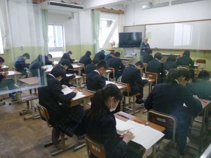 本日1限から,3年生は全国学力・学習状況調査に取り組んでいます。今年度は,国語・数学に加え,理科の調査も行われます。3年生のみなさん,最後まで全力で頑張ってください!