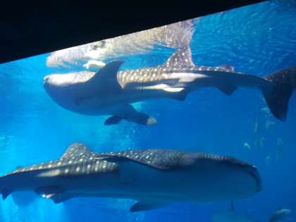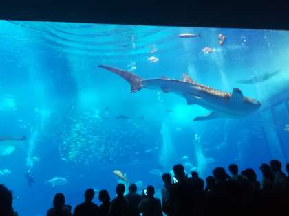 民泊先の方々と一緒に,美ら海水族館を訪れています。