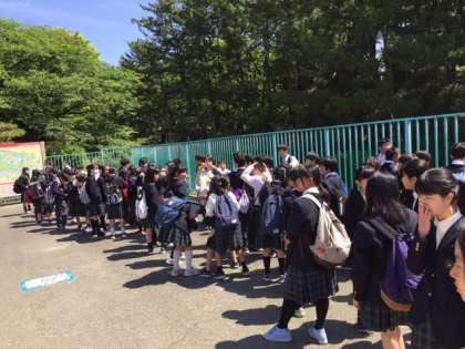 1年生は万博記念公園に到着しました。この後,国立民族学博物館を見学します。