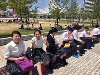 メリケンパークで昼食をとっています。