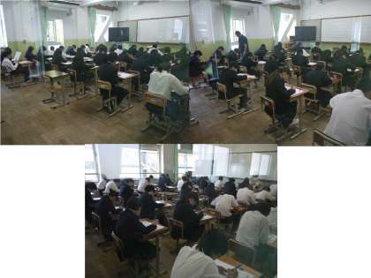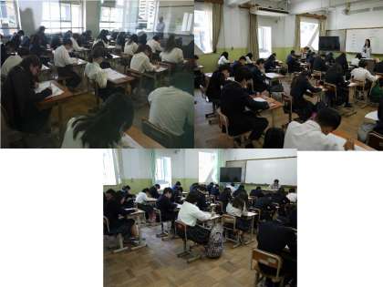 いよいよ第1回定期テストの当日となりました。生徒たちは,集中して問題に取り組んでいます。最後まであきらめず,全力を尽くしてください!