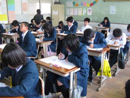 今日から第1期試験が始まりました。1年生は初めての本格的な試験で緊張していたでしょうね。試験を受けるためのいろいろな注意を受けた後、数学と社会の試験に臨みました。写真を撮らせてもらうために、ほとんどの教室を廻りましたが、物音ひとつ聞こえません。どこの教室も張り詰めたような雰囲気で、廊下などは不気味なくらい静かでした。(静かに歩くのに苦労しました)