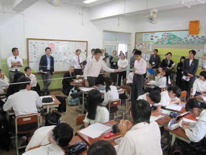 本日午後,中京支部合同授業研究会が実施されました。本校では3年3組の生徒たちが数学の授業を受けました。授業後は,本校に集まった先生方がワークショップを行い,意見を交流して考えを深めました。今日の研修で学んだことを,今後の授業に生かしていきたいと思います。