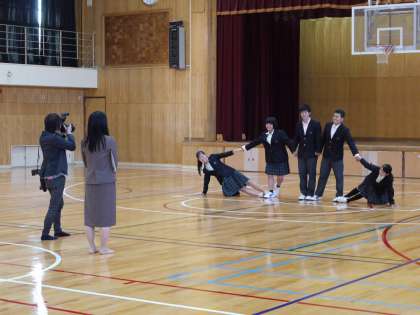本日6限,3年生は卒業アルバム用のグループ写真を撮影しました。自分たちで決めた場所で,思い思いのポーズで写真に納まりました。