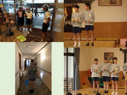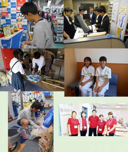 2年生のチャレンジ体験も,今日が最終日。みんな元気に頑張っています。写真は「ゴトウスポーツ」「京都アスニー」「上手楽器」「キョウト老人デイサービス」「武田病院」「東横イン」「六満こども園」の様子です。