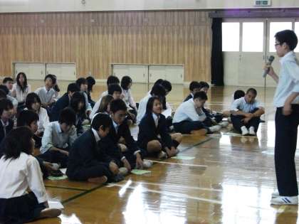 5時間目、3年生は体育館で明日からの修学旅行に際して、最後の注意がありました。みんな何となくワクワクと落ち着かない様子で、今から楽しそうな雰囲気でした。小学校とは違って、いろいろな体験活動があったり、現地調査など生徒自身で調べたものです。しかし、楽しい生徒とは違って、現地では引率者はほとんど寝ないで過ごします。「何もなくて当たり前」ということで職員は皆緊張気味です。私が新任の時、初めての修学旅行では生徒と一緒になって、みんなで写真を撮りながら、ワクワクと弾んでいました。旅行後、しかられましたが・・・。