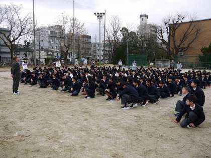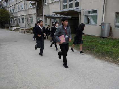 本日6限,避難訓練を実施しました。地震が起こったことを想定して,グラウンドに避難しました。今から25年前の1月17日,6000名以上の死者を出した「阪神淡路大震災」が起こりました。近い将来,大きな地震が再び起こるのではないかと心配されています。避難に際しては,パニックを起こさず,冷静に行動することが重要です。各ご家庭でも,いざという時にどのような避難行動をとるか,話し合っておいていただきたいと思います。