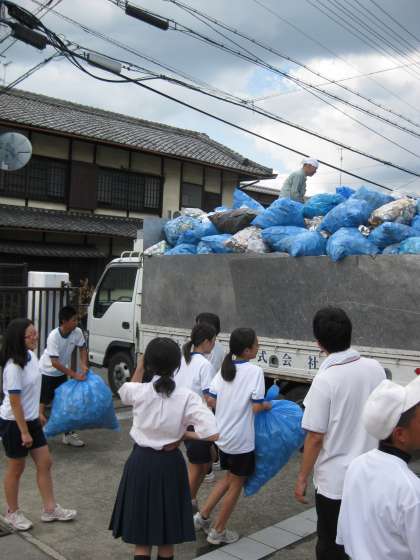 今日は本校が地域から集めた「空き缶」の搬出です。トラック一杯山盛りあります。何ヶ月かに一度、生徒会の生徒達が中心になって作業を手伝います。この費用をネパールの山の子ども達のために使っています。1個でも大切な空き缶です。今後も長く続けていきます。