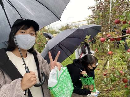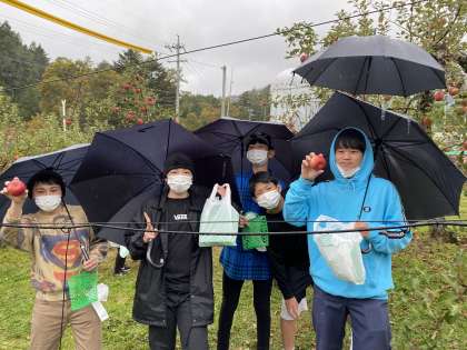 今,リンゴの収穫をしているところです。この後,収穫したリンゴやブール−ベリーを使ってのジャム作りです。