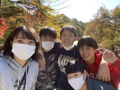 生徒と一緒に松尾先生も記念写真。一瞬生徒と間違えました!まだまだお若い!