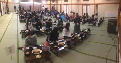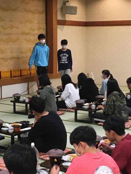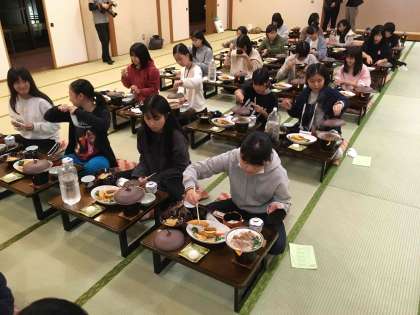 昨日の夕食の様子です。2日目は体験活動でしたので,お腹が減ったでしょうね。