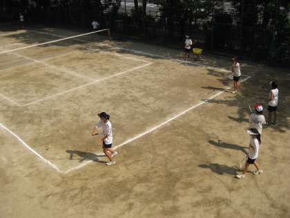 午後3時、グラウンドの中央で気温を測ってみましたらご覧の通りです(温度計の目盛りが・・・)。外の気温は38度にはなっていると思いますが、グラウンドやテニスコートは大変な状態です。水分をしっかり取って、日陰へ入ったりして休憩をしています。顧問もしっかり付いて指導をし、見守っています。明日から暫く部活動はありませんが、規則正しい生活をして下さい。