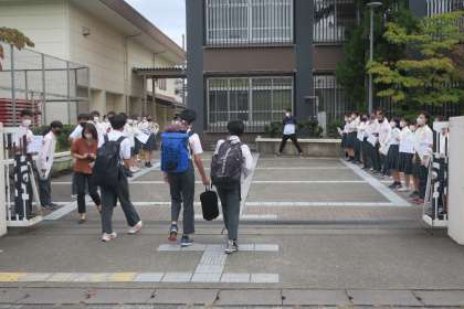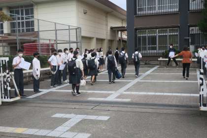 21日(木)の立会演説会・投票(今年度もZoomで開催します)に向けて,生徒会選挙活動が始まりました。今朝は登校時に,立候補生徒と応援生徒が校門付近に立ち,元気に挨拶をしていました。この調子で,生徒会活動をどんどん盛り上げていきましょう!