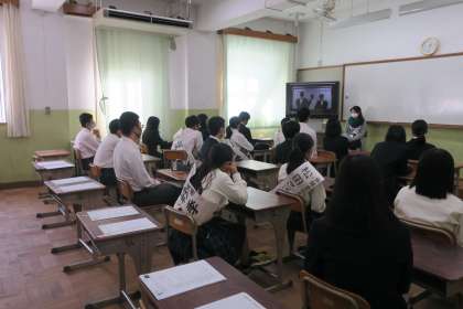 今年度も昨年度と同様に,本日の5,6限目にコンピューター室からZoomを使って「立会演説会」を行いました。