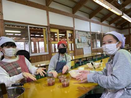 ジャムが完成したみたいです。このジャムは,家へのお土産になるそうです。保護者の方,お楽しみに!!