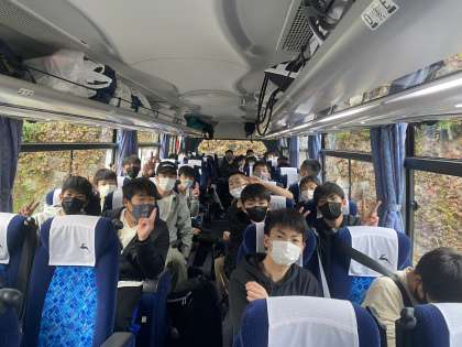 ホテル出発の様子とバスでの様子。