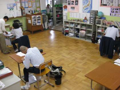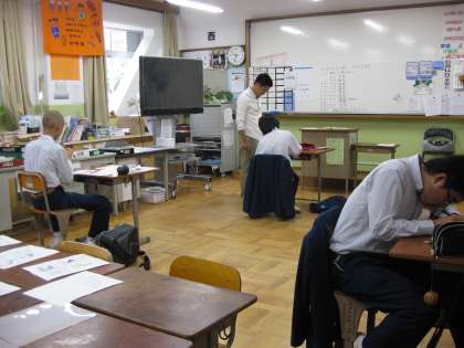 写真は1組の社会科の試験ですが、3人とも必死の様子で頑張っていました。