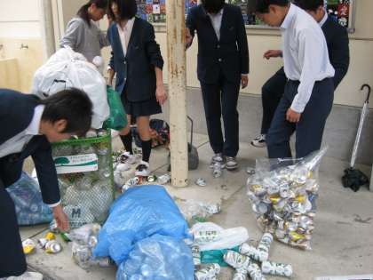 午前中から雨が降り出しました。CAN活動の缶はいつもの通り地域の方が持ってきてくれます。かなりの量になるのですが、毎週金曜日に生徒会の人達でこれらの缶を潰してくれます。なかなか大変な作業です。これが貴重な資金になって、ネパールや日本の被災地の役に立ってくれます。