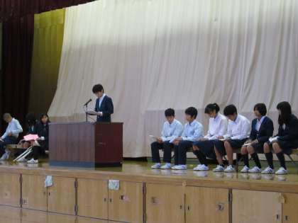 本日6限、体育館に於いて「第3回インプレッションタイム」が行われました。今日の発表内容は、体育大会、文化祭を終えての発表でした。体育大会や合唱、貼り絵制作に関わった中から学んだことを作文にして紹介しています。舞台ではかなり緊張していたようですが、皆さん発表するときは堂々としていました。