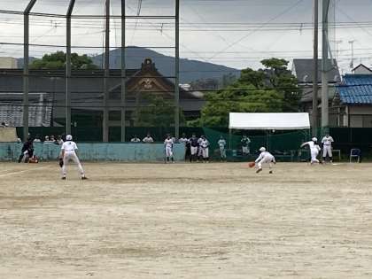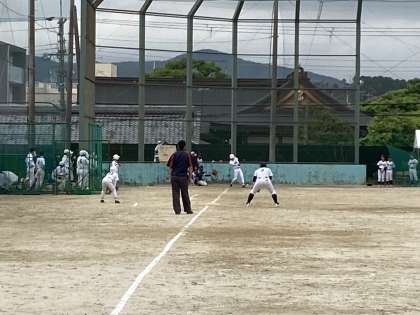 サスペンデッドゲームの続きとして,試合会場が殿田グラウンドから北野中学校に変更され,1対1から試合が再開されました。ナイスピッチングと共に、守備も堅く、内野ゴロや外野フライも確実なプレーで一進一退の試合展開となりました。これからも日々の練習を大切に一つ一つ!頑張ってください。
