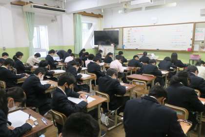 本日,第1回定期テストが行われています。1年生にとっては,中学校に入って初めてのテストになります。みんな真剣に問題に取り組んでいました。