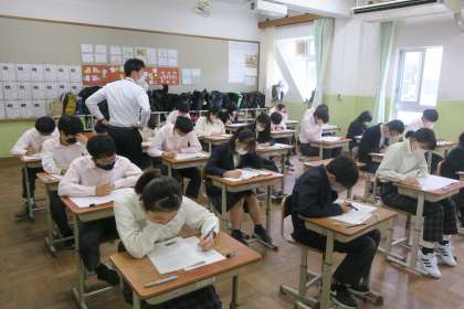 先週,第1回定期テストが終わったばかりですが,本日,3年生は学習確認プログラムを行っています。このテストが終われば,修学旅行が待っています。頑張って乗り切ってください。