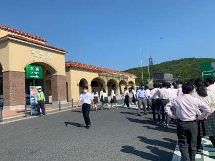サービスエリアでトイレ休憩をしています。良い天気ですね。