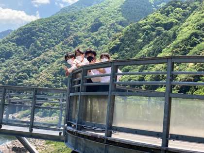 吉野川サービスエリアの様子でしょうか?この後,昼食終了後,ラフティングを行います。今日は気温も高いので,気持ちいいでしょうね。