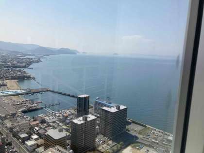 高松シンボルタワーからの景色でしょうか。高松の海がきれいですね。