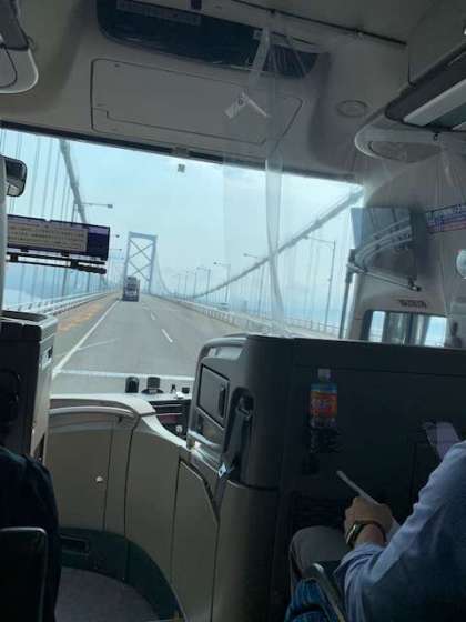 もうすでに宿舎を出発しています。9時30分ぐらいに,ネスタリゾート神戸に到着の予定です。