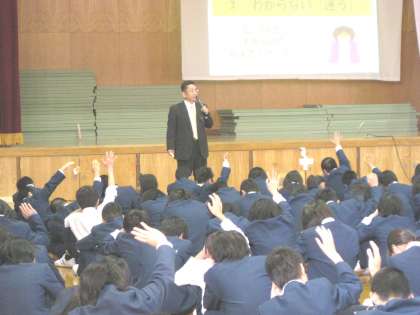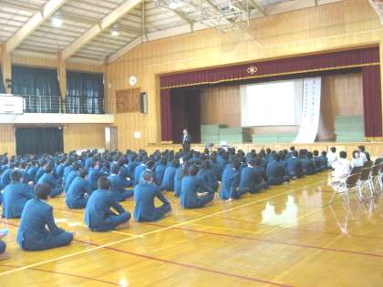 「心豊かな人生を送るために」、今日の講演会の題名です。講師は京都府警本部生活安全部少年課少年サポートセンター所長補佐をしておられる方です。現職の警察官でもあります。少年非行防止のために日々講演会などを行いながら取組んでおられる方です。具体的な犯罪の話やそれが及ぼす影響など、わかりやすく説明して頂きました。