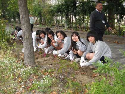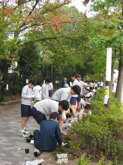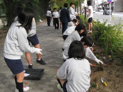 押小路花壇の花植えです。ここは2・3年生の分担です。家庭ではあまりできないことだと思います。