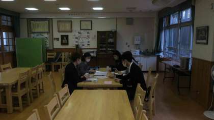入学式参列後、今後のPTA活動について打ち合わせをしていただいている令和5年度PTA本部役員の皆様。