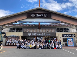 修学旅行1日目 中野うどん学校 集合写真