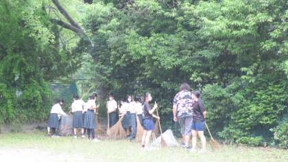 60人余りの生徒が参加してくれました。場所は正門横の広場。草抜きを中心に行ってくれました。軍手をつけて、腰高ぐらいに伸びた草を豪快に抜いていました。抜き取った草を熊手で取ってくれる人、それをゴミ袋に入れる人。役割分担は自分たちで決めて。90リットルのゴミ袋8袋分集めてくれました。蚊がたくさん発生する時期です。衛生面もビジュアル面もよくなりました。参加してくれたみんな、ありがとうございました。