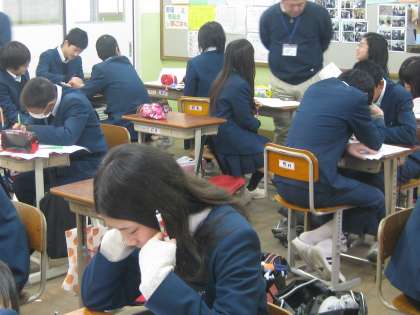 1限、2年生が修学旅行の事前学習をしています。