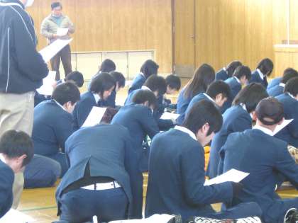 4限、3年生に受験の注意が行われています。