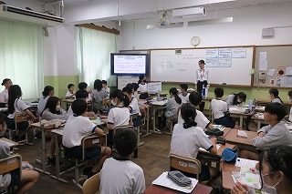 実習の先生方の緊張感が伝わってきました。みんなは普段通り、しっかり「発言する」。発言に「うなずく」「拍手する」など、相手の意見をしっかりと聞いていましたね。
