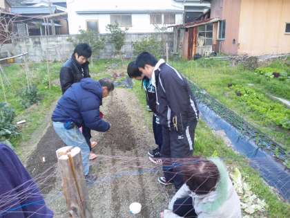 農家の畑で「種まき」をしているそうです。
