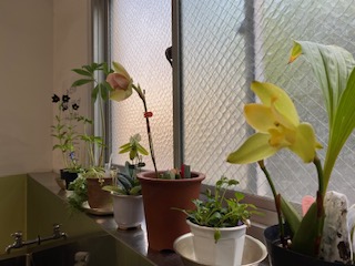 みんながよく利用する手洗い場や廊下に、蘭やユリなどの花が飾られています。美術科の先生が、ご家庭で栽培されたものを置いていただきました。この花には心が和む効果や、ストレス・疲れが自然と癒されるパワーがあります。みなさんも、校舎内で探してみてくださいね!