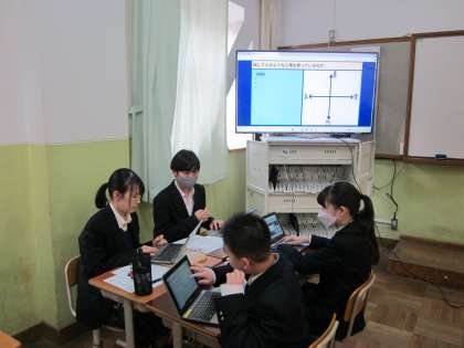 タブレットやカードなど様々な学習ルールを使って、自分の考えや、他人の考え方を知ることを学んでいます。写真は、主体的・対話的な学びを通して、各教科で身に着けた力を様々な課題解決に活かせることを意識した授業です。中盤のグループ協議では、自分に合った考え方を探り、今後のすべての学習活動につなげていきます。