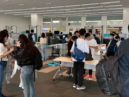 現在、搭乗に際しての荷物検査中。